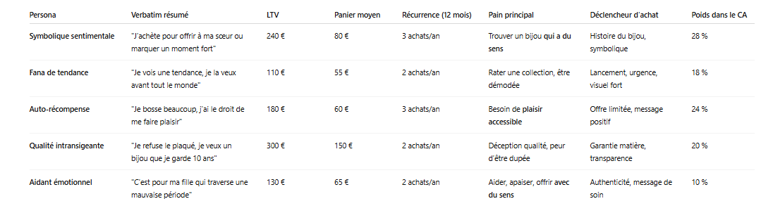 “Femme, 25–45 ans, prénom Caroline, deux enfants, aime les choses simples mais élégantes.”